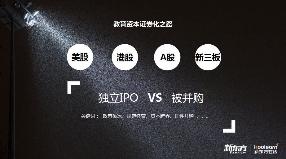 教育的资本证券化速度也将加快,对于中国的企业来讲,这些资本市场都可以是一个好的选择。以新东方在线为例,我们挂牌以后有很多的投资机构关注我们,希望投资和定增我们。最近证监会调研看了我们运营情况和经营数据后,也认为我们符合主板市场,其实我们自己并不这么看,因为资本市场对一家企业核心的价值在于其融资能力。 所以我觉得对于一个创业公司来讲,什么时间上资本市场,上什么样的资本市场,我个人觉得都不是什么大的问题和矛盾。新东方2006年上市,当时的股价应该是4美元,这个过程中也经历了做空和股价波动。但是俞老师一直坚持当初创立新东方的想法,即希望给更多的学生提供好的培训课程,所以发展到今天,也可以看到美股市场上教育的股价增长很快,无论是新东方还是好未来,可能翻了不止一倍。 对在线教育行业创业公司的三点建议 再说说在线教育上半场的感受,在这十多年里,我们前两年就定下的模式没有发生过变化。而在这个过程中,我经历了新东方内部的改变和互联网的热潮,各种各样的商业模式涌现,比如团购平台、社交网络。每当有新的东西出来,我们内部都要折腾一轮,是不是应该转型做教育平台、社交网络。看起来我们有这么多的学生,好像什么都可以做。我加入新东方的想法比较简单,就是希望能够做一所互联网的学校,因为中国教育太不平均,教育资源太集中,所以我感觉教育课程是最重要的,优质的内容和优质的老师是最重要的。对于在线教育行业的创业公司,有几点想法: